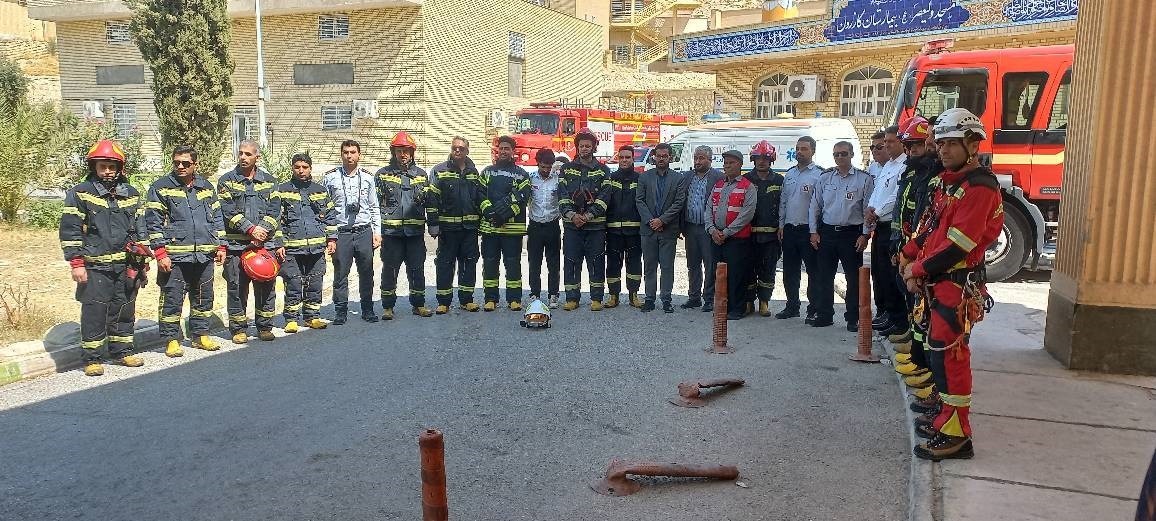 برگزاری مانور آتش‌نشانی و تخلیه اضطراری در بیمارستان حضرت ولی‌عصر (عج) کازرون